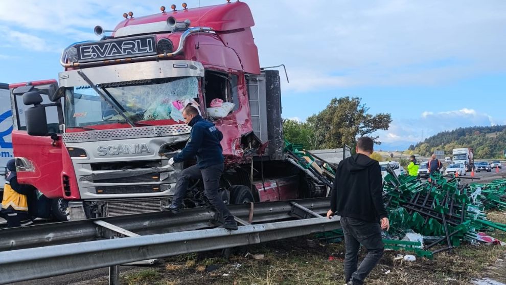 Kaza, sabah saatlerinde TEM Otoyolu'nun Bolu Batı Gişeleri mevkiinde meydana geldi. Edinilen bilgiye göre, Uğur V. idaresindeki 42 E 6794 plakalı tır, sürücüsünün direksiyon hakimiyetini kaybetmesi sonucu refüjdeki demir bariyerlere çarptı. Çarpmanın etkisiyle tırın dorsesinde bulunan demir profiller yola saçıldı. İhbar üzerine olay yerine jandarma, sağlık ve itfaiye ekipleri sevk edildi. Araçta sıkışan sürücü, ekiplerin çalışmasıyla bulunduğu yerden çıkarılarak ambulansla hastaneye kaldırıldı.