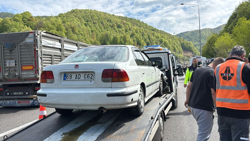 Kaza, TEM Otoyolu’nun Bolu Dağı Tüneli mevkiinde meydana geldi. Edinilen bilgiye göre, Ankara istikametinde seyreden Basri B. yönetimindeki 69 AD 662 plakalı otomobil, aynı istikamette ilerleyen üzerinde araç yüklü olan 14 ADF 369 plakalı oto kurtarıcı ile çarpıştı. Çarpışmanın etkisiyle yolda savrulan otomobilde bulunan sürücü Basri B., Bahriye B. ve Hamidiye B. isimli kişiler yaralandı. Durum 112 Acil Çağrı Merkezi’ne bildirildi. İhbar üzerine bölgeye sağlık, otoyol jandarması ve karayolları ekipleri sevk edildi. Kazada yaralanan vatandaşlar, sağlık ekiplerinin ilk müdahalesinin ardından hastaneye kaldırıldı. Kaza sebebiyle yolda trafik tek şeritten kontrollü olarak sağlandı. Araçların yoldan kaldırılmasının ardından ulaşım normale döndü. Kaza sebebiyle her iki araçta da maddi hasar meydana geldi.