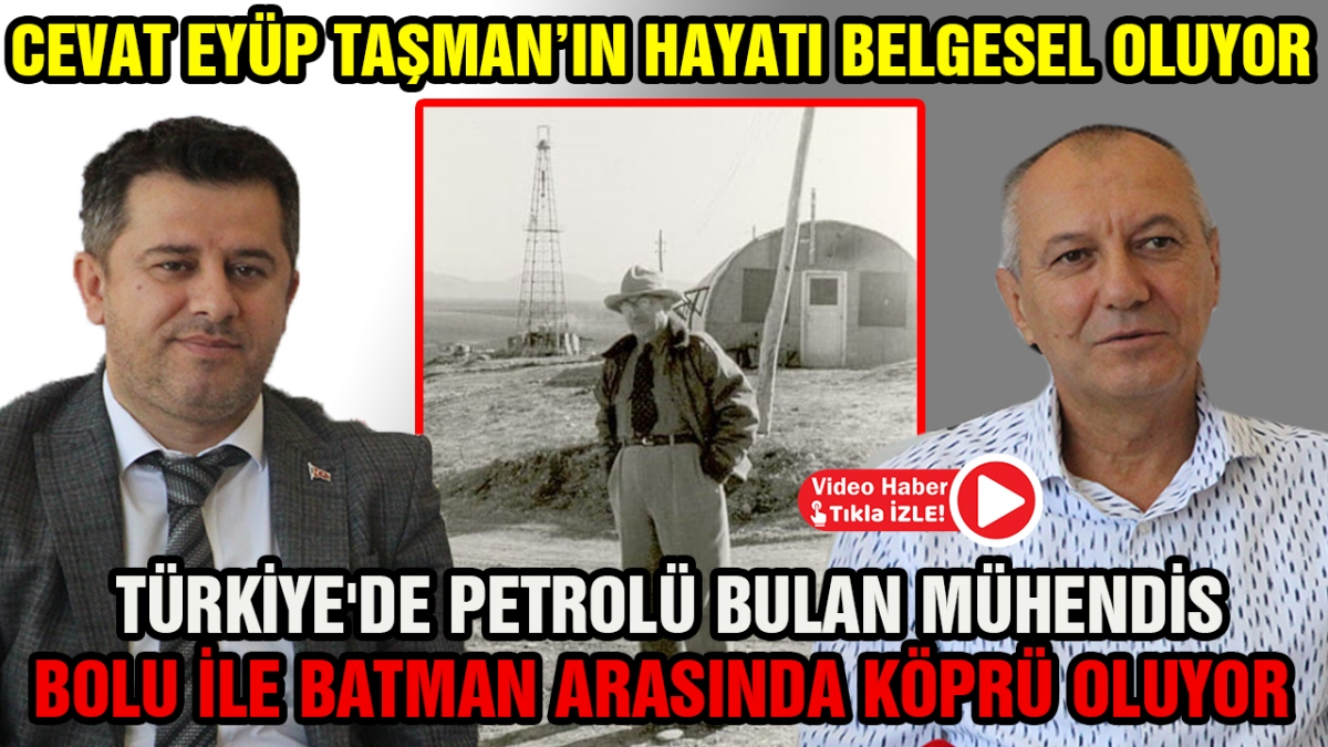 Türkiye’de petrolü bulan mühendis Bolu ile Batman arasında köprü oluyor. Batman Valiliği, Batman Belediyesi ve Batman Gazeteciler Cemiyeti ile Bolu Bağışçılar Vakfı arasında yürütülen görüşmeler sonucunda, Türkiye’de ilk kez petrolü çıkaran isim olan Bolulu Cevat Eyüp Taşman’ın hayatı belgesel haline getiriliyor. Bu vesileyle Bolu’da bir araya gelen Batman Belediyesi Başkan Yardımcısı Metin Gürbüz ve Batman Gazeteciler Cemiyeti Başkanı Arif Arslan, Bolu Bağışçılar Vakfı Başkanı Nahit Abak bir araya gelerek basın toplantısı düzenledi.