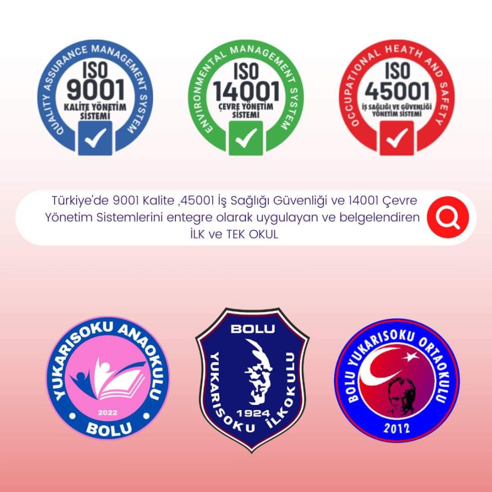 Yukarısoku Anaokulu-İlkokulu-Ortaokulu, "ISO 9001 Kalite Yönetim Sistemi", "ISO 14001 Çevre Yönetim Sistemi" ve"ISO 45001 İş Sağlığı ve Güvenliği Yönetim Sistemi"ni entegre olarak uygulayan ve belgelendiren ilk ve tek okul oldu.