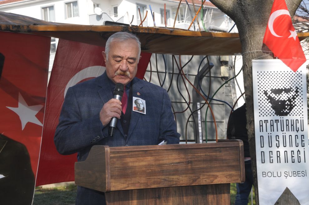 Saygı Duruşu ve İstiklal Marşı'mızın okunması ile devam eden programada, günün anlam ve önemi ile ilgili konuşma yapan Atatürkçe Düşünce Derneği Bolu Şube Başkanı Atilla Yılmaz, “Kalpaksız Kuvay-i Milliyeci, Laik Türkiye Cumhuriyeti Devleti'nin yılmaz savunucusu Atatürk ilke ve devrimlerine bağlı araştıran ve sorgulayan değerli gazeteci yazar Uğur Mumcu, 24 Ocak 1993 tarihinde Ankara'da aracına konulan bomba ile katledilmiştir. Kemalist devrimci Uğur Mumcu yaşamını toplumun gerçekleri öğrenmesine adamış Türk Milletinin aydınlanması, laik, demokratik ve tam bağımsız bir Türkiye Cumhuriyeti Devleti için mücadele vermiştir. Özgürlüğün simgesi Cumhuriyetin sesi olan Mumcu, Kuvay-ı Milliye ruhuyla yaşayan, yüreği yurt sevgisi ile dolu Türkiye'nin kaybettiği en büyük değerlerden birisidir. Omnun aydınlık fikirleri savunduğu ve inandığı değerler, laik Türk Milletinin aklında ve yüreğinde sonsuza dek yaşayacaktır. Bu duygu ve düşüncelerle gerçeklerin ve doğruların üzerine korkusuzca giden başarılı çalışmaları ile Türk halkında derin izler bırakan, yurtsever , cesur gazeteci yazar Uğur Mumcu'yu 31. ölüm yıldönümünde saygı ve özlemle anıyor Kemalist nice Uğurlar yetişmesini diliyorum.” dedi.